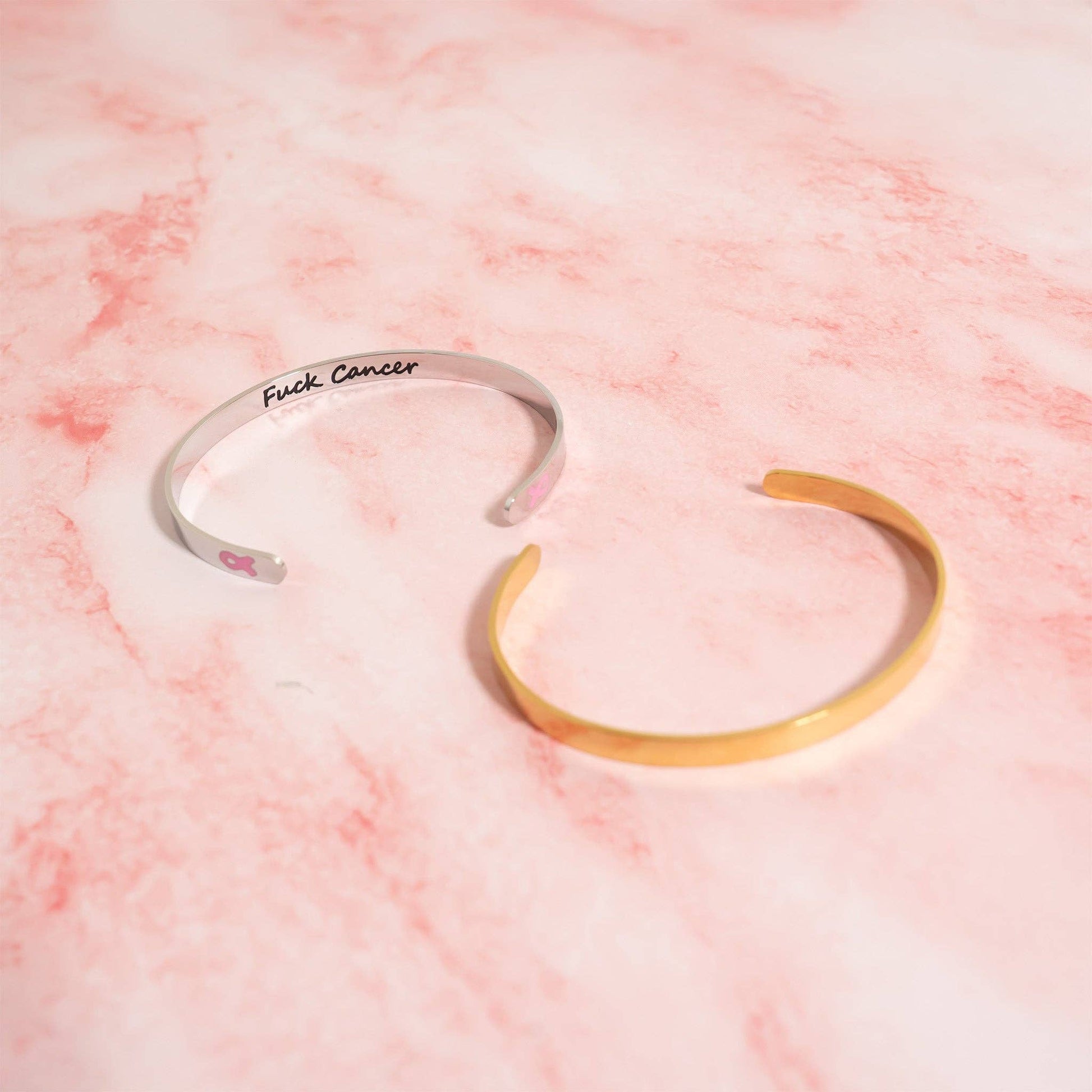 18K Gold PVD Stainless Steel Adjustable Bangle F*ck Cancer