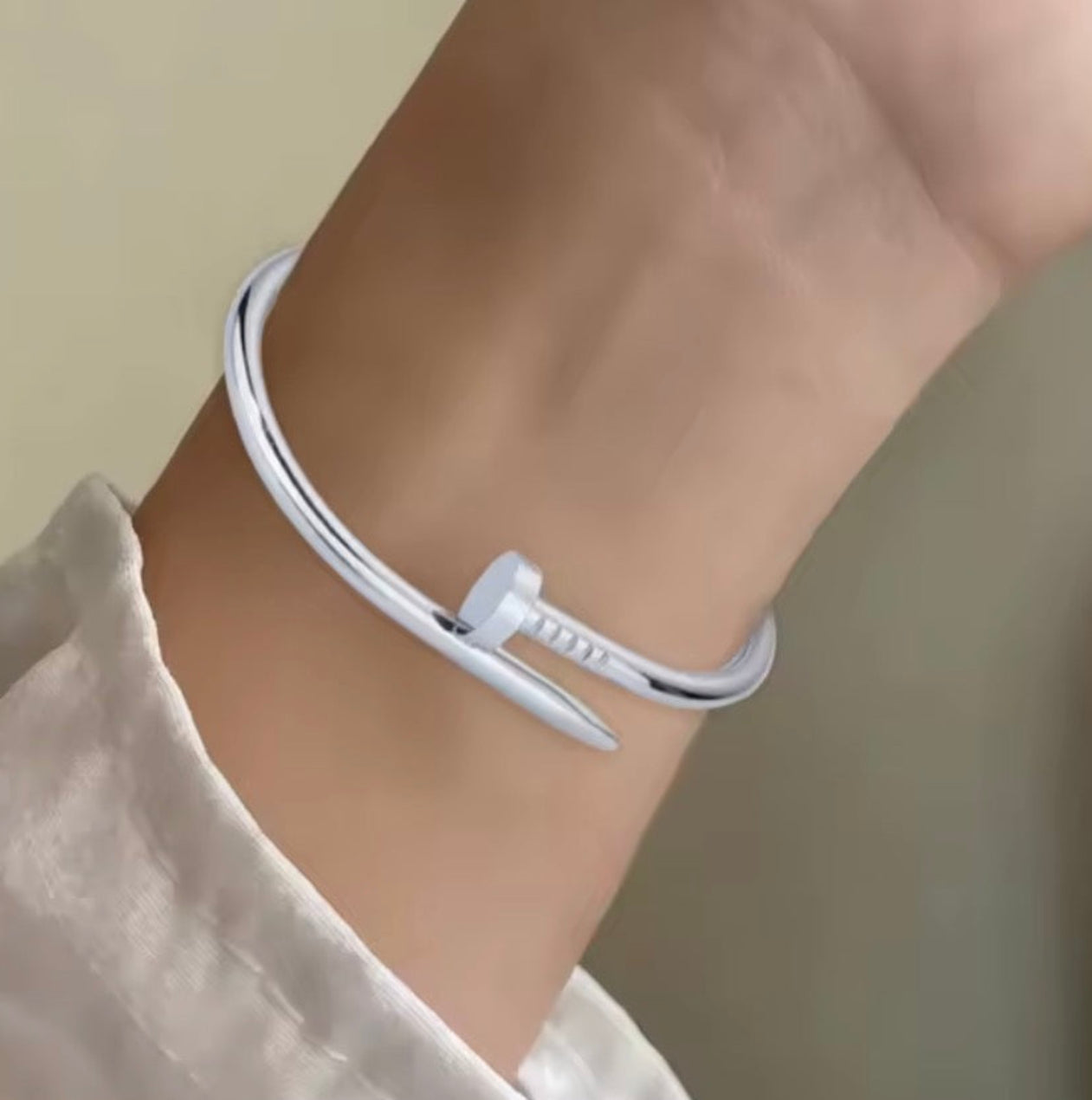 Available in both silver and gold, it pairs beautifully with layered jewellery or stands alone as a refined statement. The secure hinge and magnet fastener ensures reliable closure, making it an essential addition to any jewellery collection.